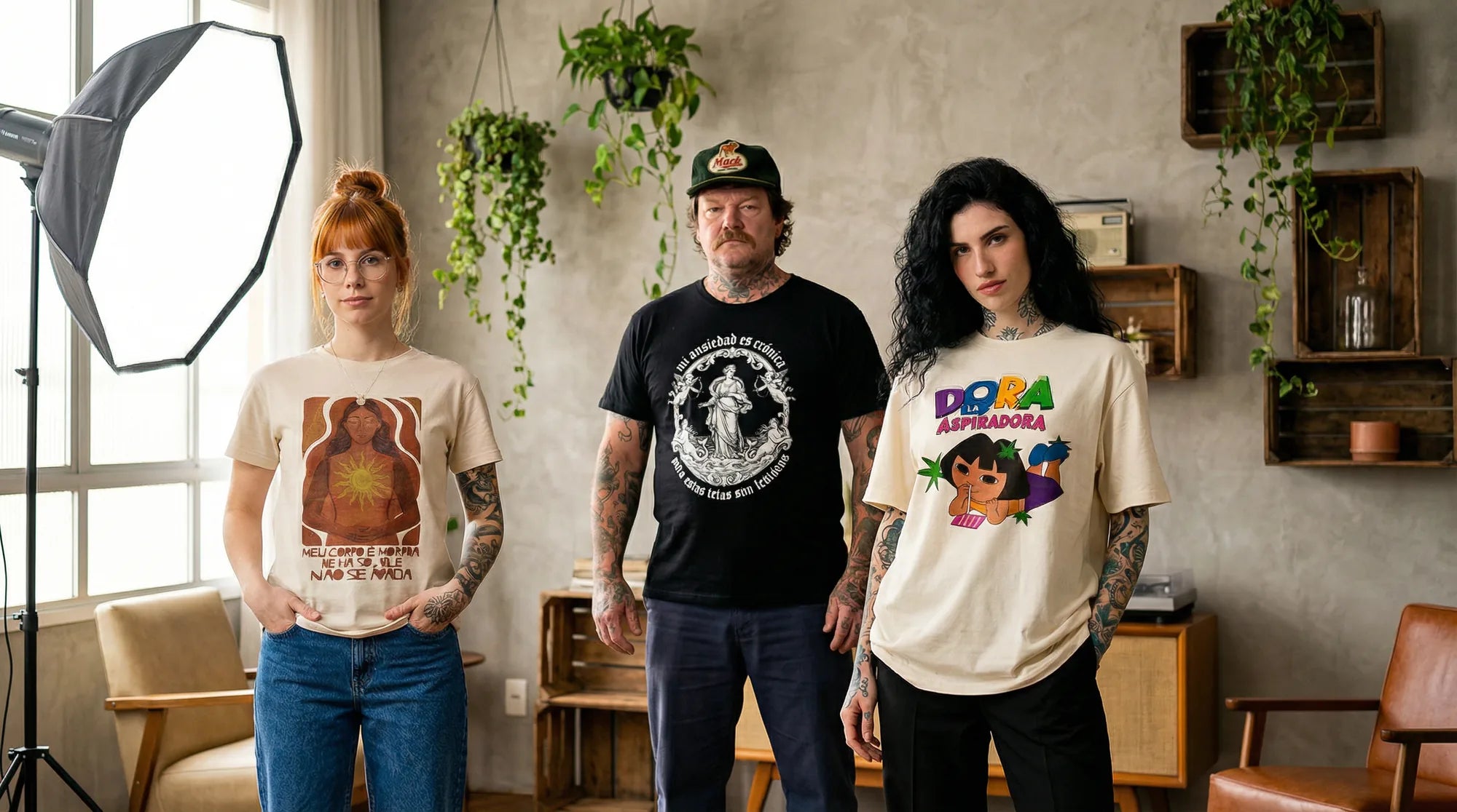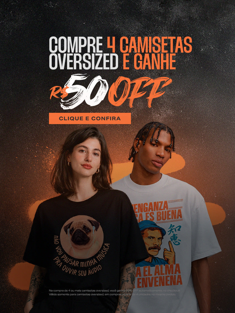 Por isso criamos peças que duram, não tendências que passam. Produção por demanda, tecido premium, acabamento profissional. Na contramão do fast fashion, acreditamos que roupa de verdade resiste ao tempo — e carrega suas contradições junto com você.